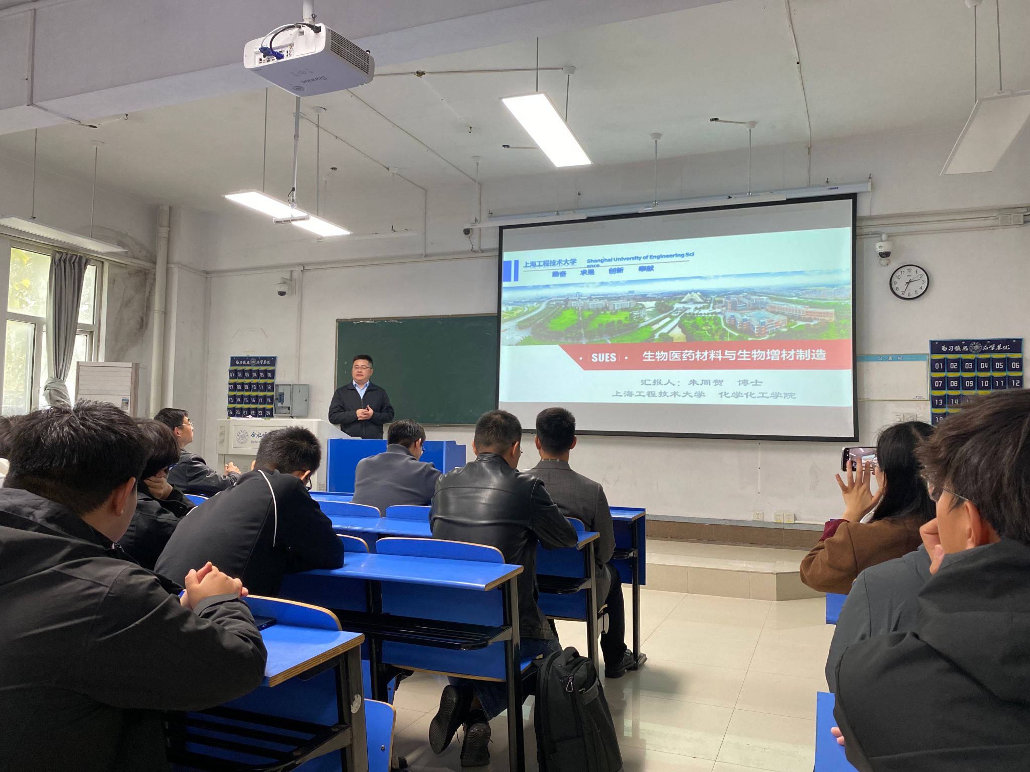 本网讯 10月31日下午,6776永利集团2012届优秀校友、上海工程技术大学教授朱同贺应邀返回母校,在锦绣校区逸夫楼A103为以6776永利集团师生为主的全校师生作了题为“生物医药材料与生物增材制造”的讲座。讲座由6776永利集团院长朱金苗主持,学院副院长董雄辎、教师代表及相关专业学生参加。
