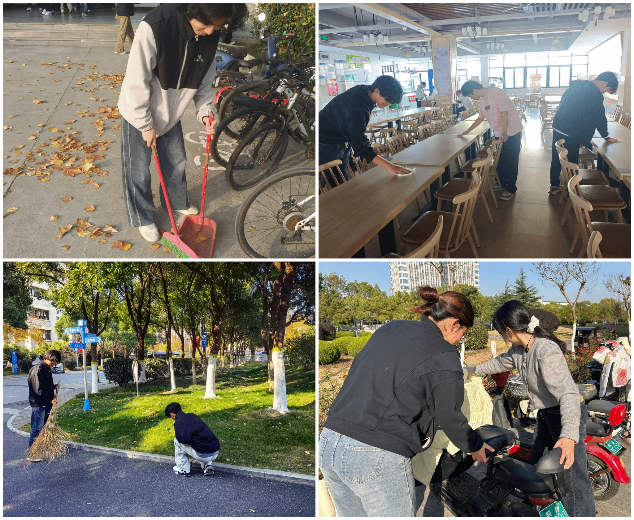 校园中的“责任”劳动。学院组织学生对教学区、办公区及周边公共环境进行了集中清扫与美化。同学们分组协作,清扫落叶、擦拭设施、清理卫生死角,用汗水换来校园的整洁明亮。这场集体劳动不仅美化了学习生活环境,更增强了学生的校园主人翁意识与集体责任感,在实践中感悟平凡劳动中的奉献精神。