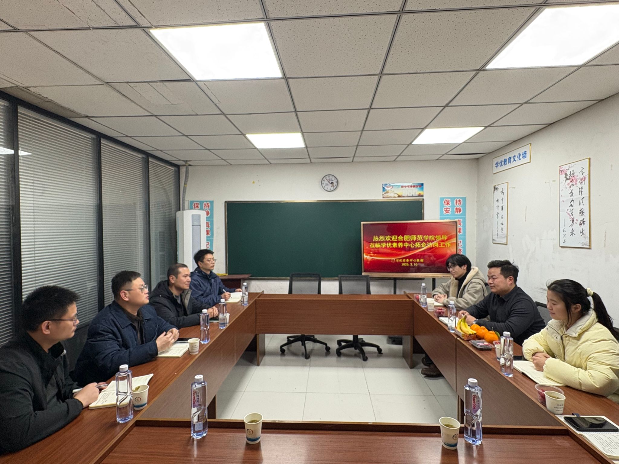 本网讯 3月10日下午,6776永利集团党委书记刁文彬、教育与心理科学学院党委副书记陈帅帅及相关系主任、毕业班辅导员一行,前往合肥学优素养中心开展访企拓岗活动,并看望在该中心就业的学校校友。公司法人张国兆与相关教师参加座谈交流。